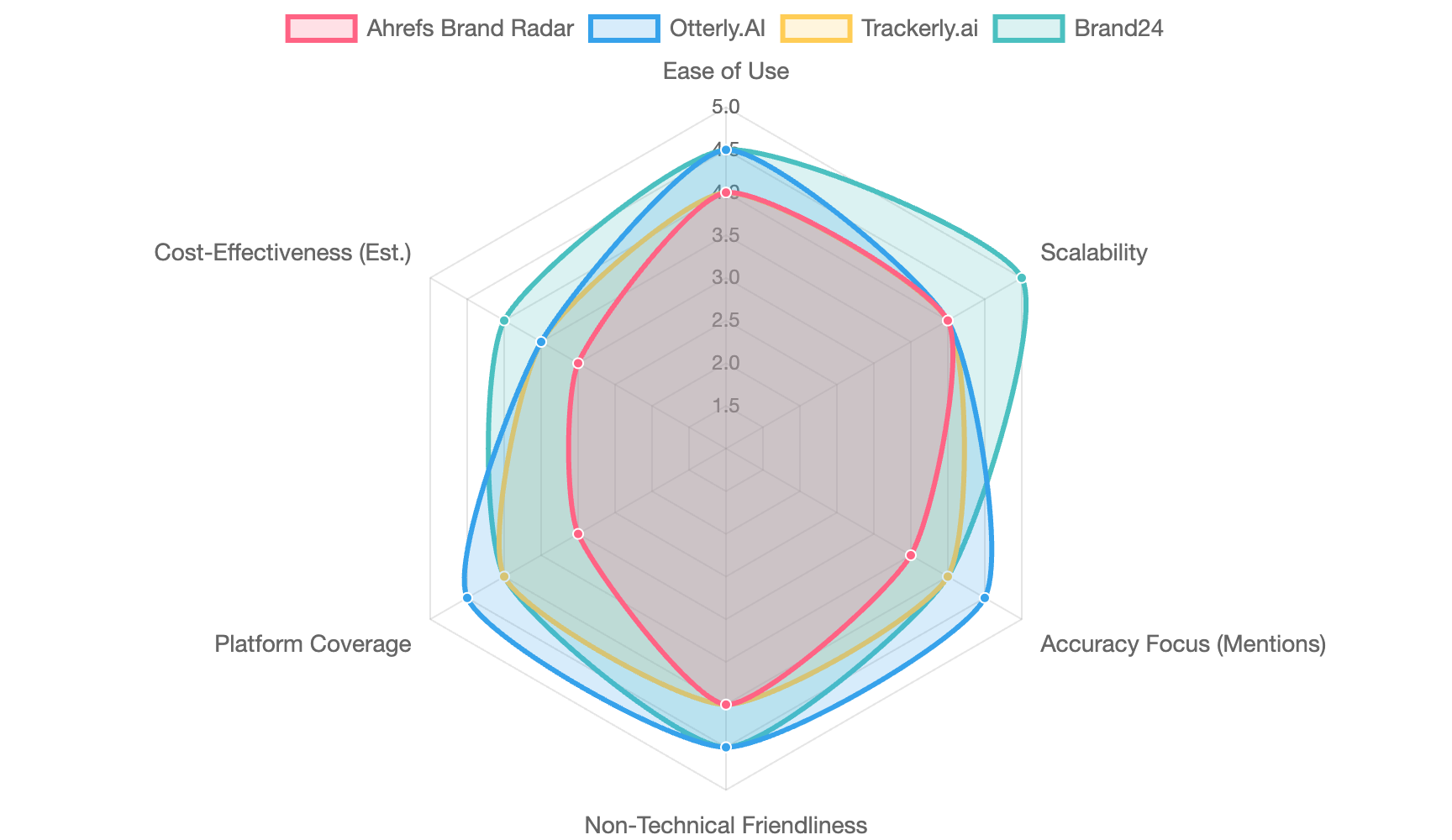- Otterly.AI and Brand24 appear particularly suitable due to their automated tracking, clear dashboards, and focus on accessibility for non-technical users.